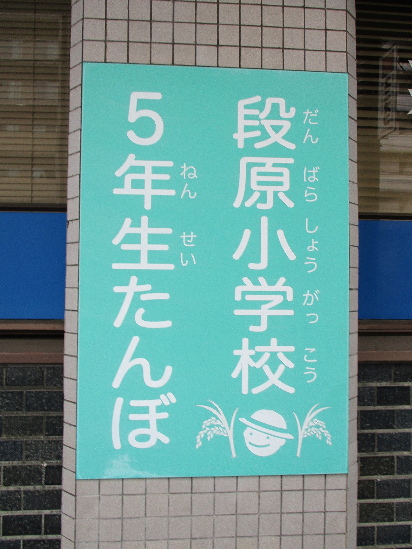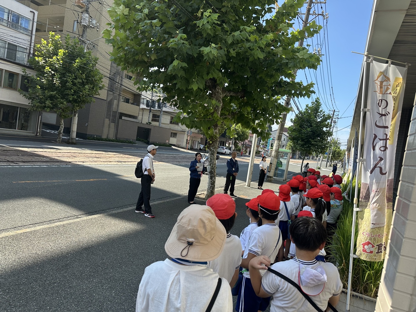今回は、段原小学校5年生のみなさんが、地域のことを学ぶため段原地区を見て回っていただく最中に、自分たちで植えた稲の観察に立ち寄っていただきました。