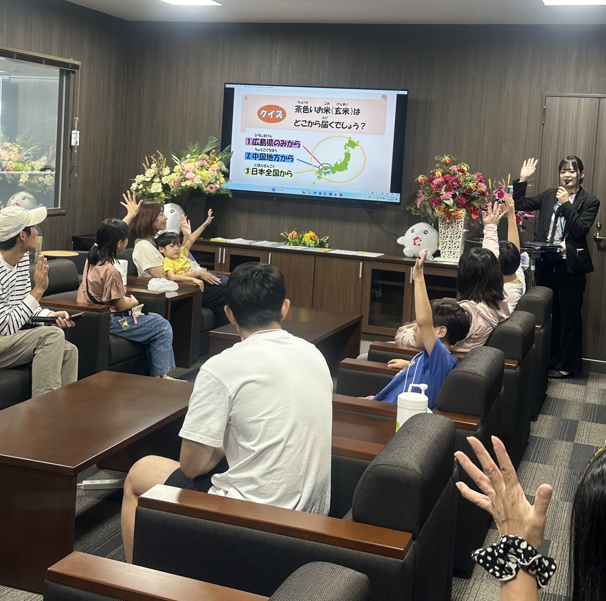 工場見学以外にも、食品部の倉庫に入っていただき実際の温度管理を肌で感じていただいた他、食育授業など様々な角度からお米についてお話させていただきました。
