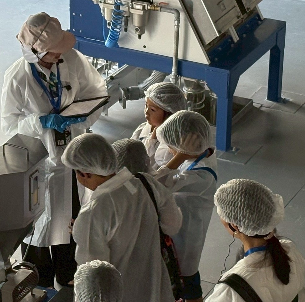 白衣に着替えて工場の中まで入っていただき、どのように精米されているか見ていただきました。
