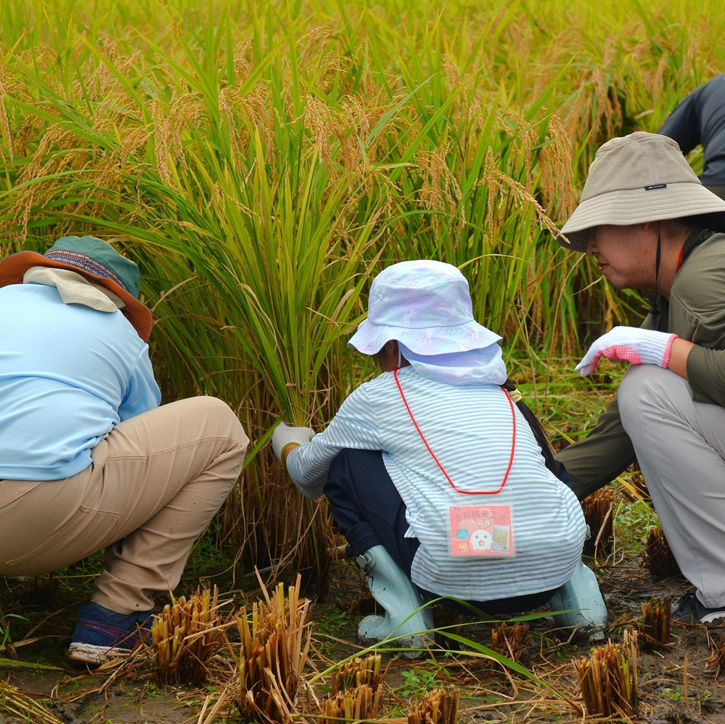 食育の観点から地域の皆様に田植えから稲刈り、精米、ごはんになるまで一連の流れを体験していただき
