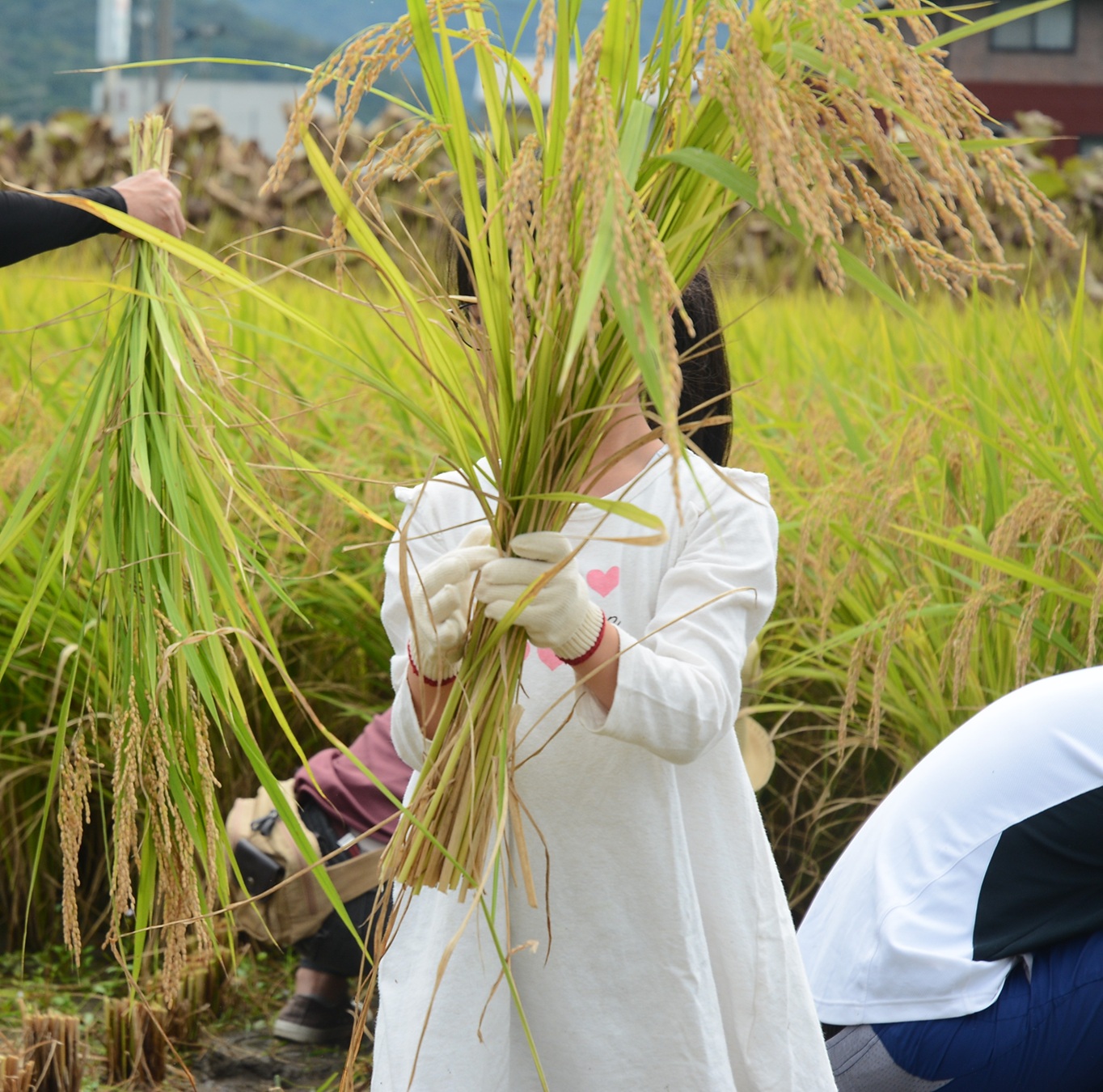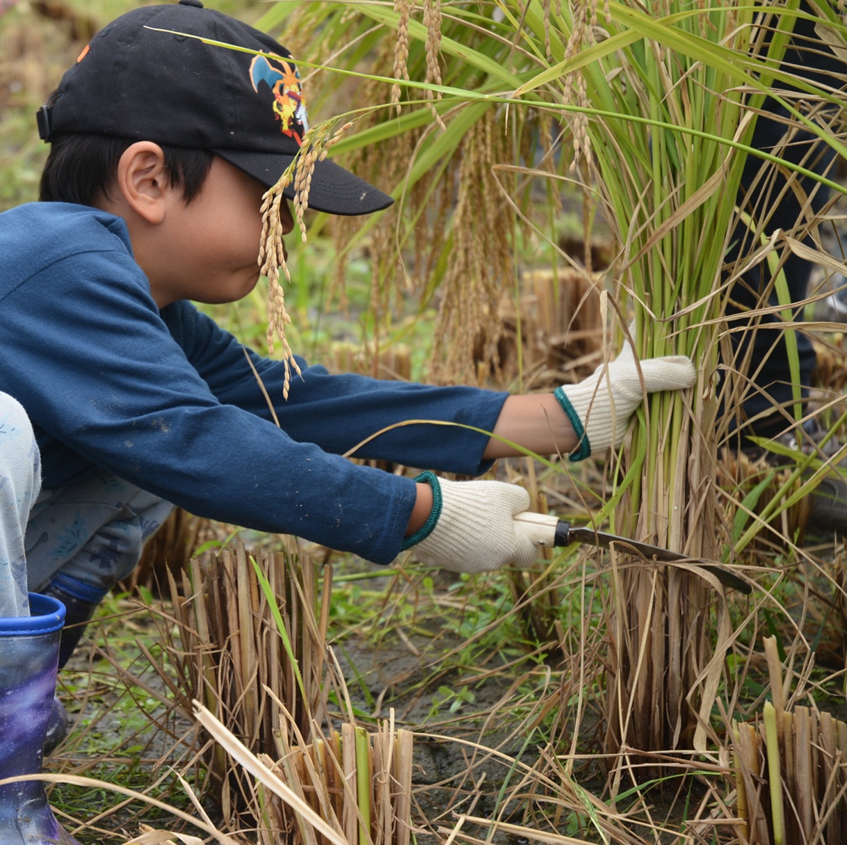 お子様が、刈った稲を大事そうにかかえていらっしゃるのが印象的でした。