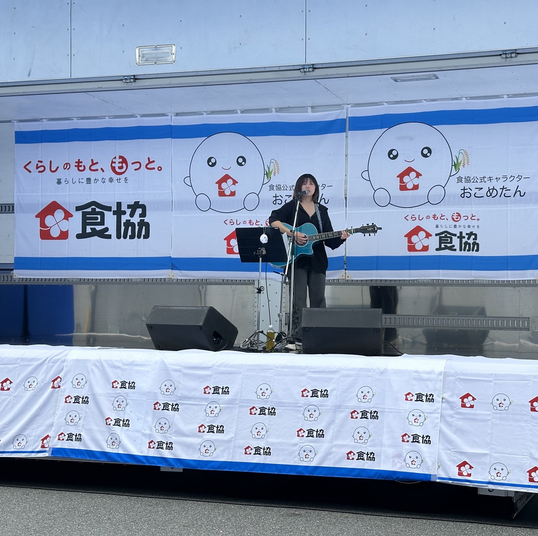 また、今年は広島県出身のシンガーソングライター寿里さんが、おこめたん号に乗ってライブを行いました。