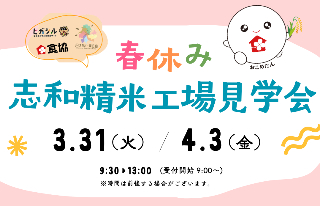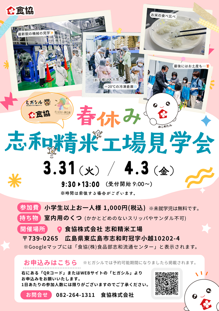 この度、食協㈱志和精米工場「春休み工場見学会(全2回)」を開催いたします。